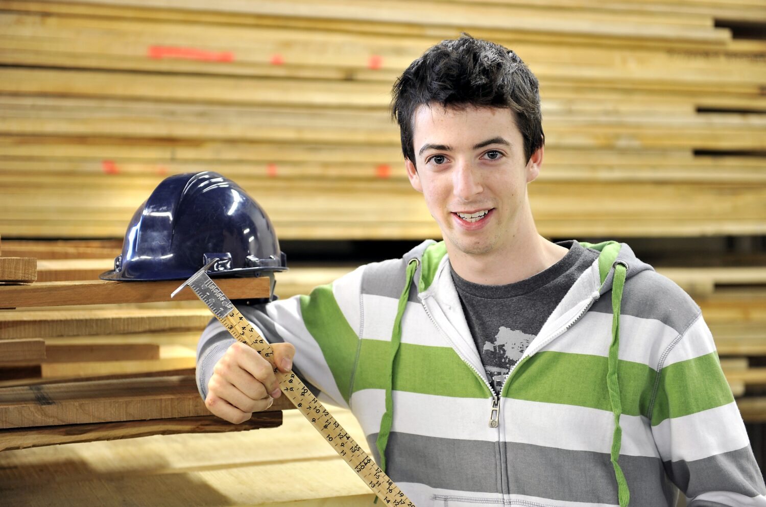 Son rôle consiste à marquer les pièces en vue d’une nouvelle transformation. À l’aide d’instruments, cette personne vérifie si elles ont été débitées aux dimensions requises et les classe selon les normes de l’industrie.